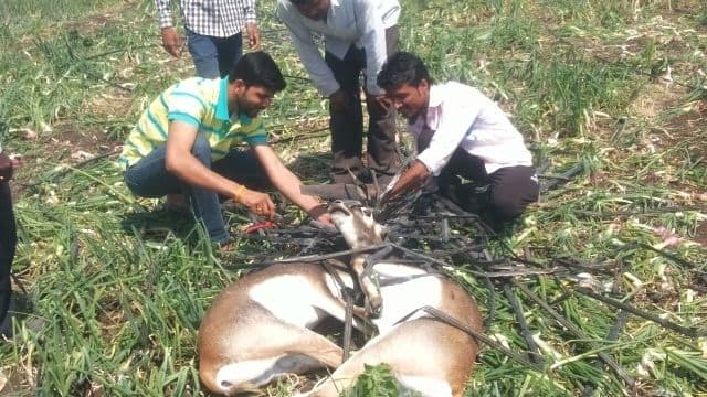 औरंगाबादच्या कन्नड तालुक्यातील नागद इथं पाण्याच्या शोधात फिरणारे काळवीट ड्रीपच्या पाईपला अडकून पडले.