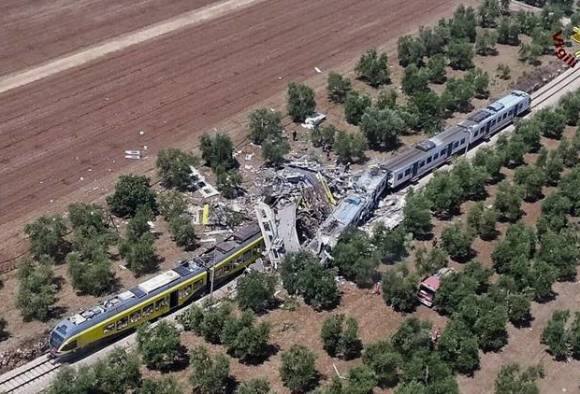 पुग्लिया आणि अँड्रिया या दोन भागांच्या मध्ये एकाच रुळावर दोन ट्रेन समोरासमोर आल्याने हा अपघात घडला. आकाशातून घेतलेला या अपघाताचा फोटो घटनेची भीषणता स्पष्ट करत आहे. वेगाने येत असलेल्या दोन्ही ट्रेनच्या पुढील भागाचा अक्षरशः चक्काचूर झाला आहे.