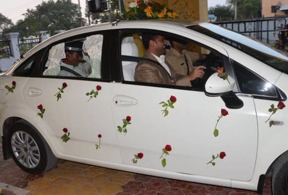 अकोल्याचे जिल्हाधिकारी जी श्रीकांत गाडी चालवत आहेत आणि त्यांचा ड्रायव्हर दिगंबर ठक ऐटीत मागे बसलेत, असं चित्र अकोल्यात पाहायला मिळालं.